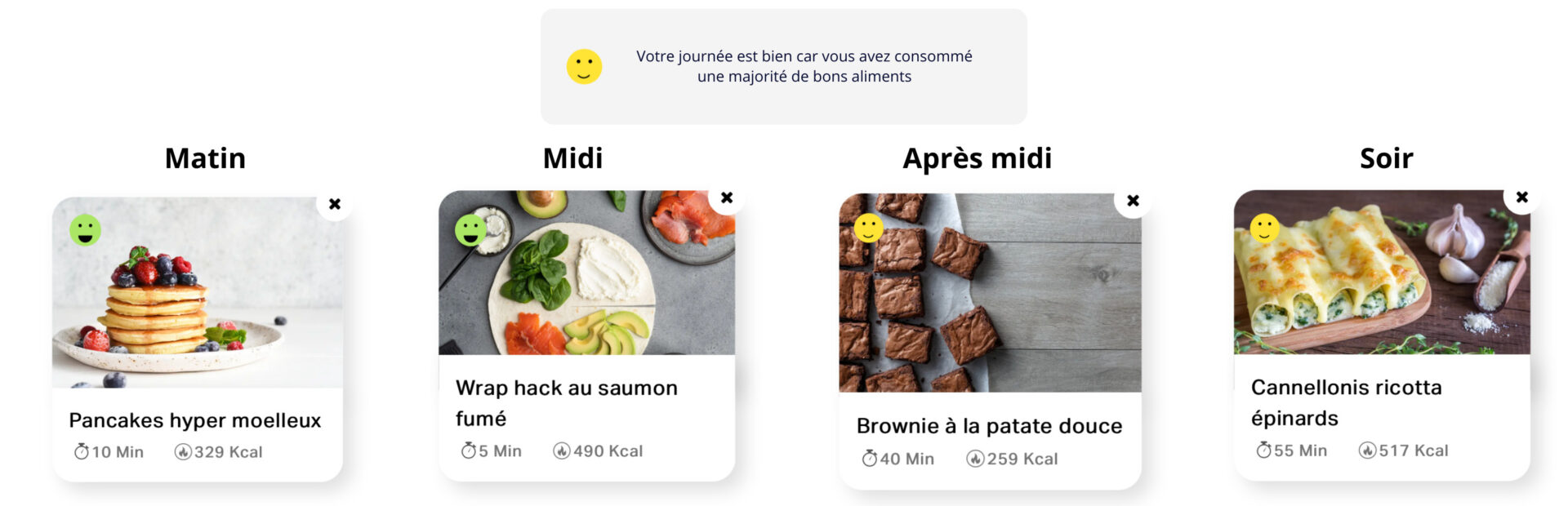 Si pour vous, planifier le menu de la semaine est un casse-tête, eatvice a la solution. Nous vous préparons une sélection sur mesure du petit déjeuner au repas du soir. Suivez le nutriscore de chaque recette pour une journée équilibrée. Contient les ingrédients, la préparation étape par étape, des alternatives supplémentaires si vous n’aimez pas la recette proposée et leur valeur nutritionnelle.